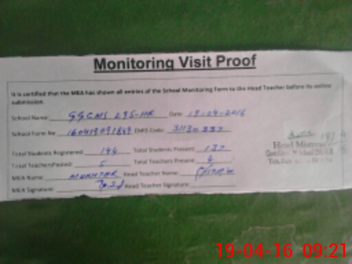 | Attendance Register | Head Teacher | MEA with School | Visit Proof |