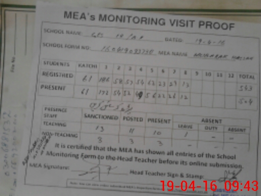 | Certified that this School was Inspected by the Undersigned MEA/DMO Today and the Information Stated Above is as Per Record. | |||||
