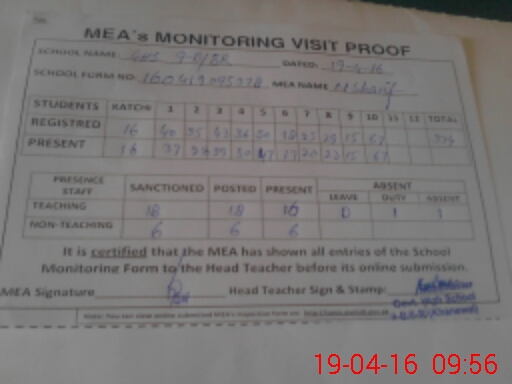 | Certified that this School was Inspected by the Undersigned MEA/DMO Today and the Information Stated Above is as Per Record. | |||||