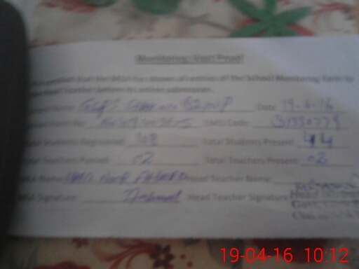 | Attendance Register | Head Teacher | MEA with School | Visit Proof |