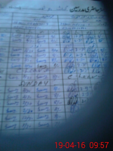 | CNIC | Full Name | Designation | R/C | Absence During Last Calender Month |