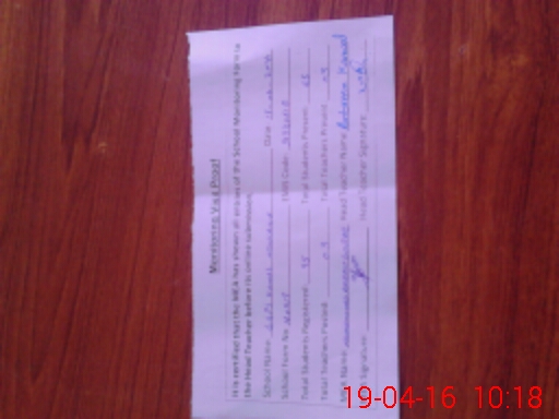 | Attendance Register | Head Teacher | MEA with School | Visit Proof |