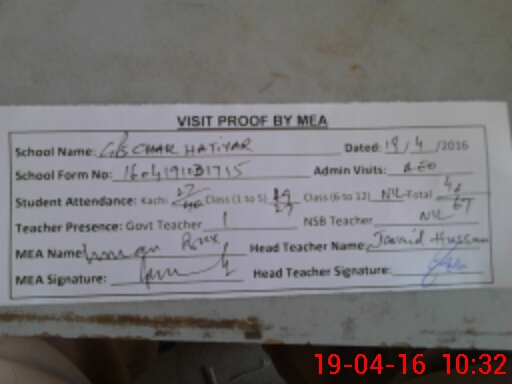 | EMIS Code: 32430096 | Name of School: GPS CHAK HATHIAR | |||