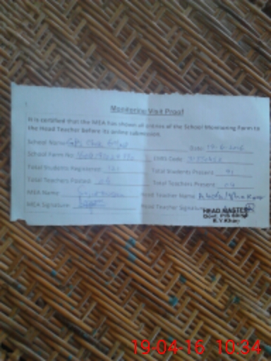 | Attendance Register | Head Teacher | MEA with School | Visit Proof |