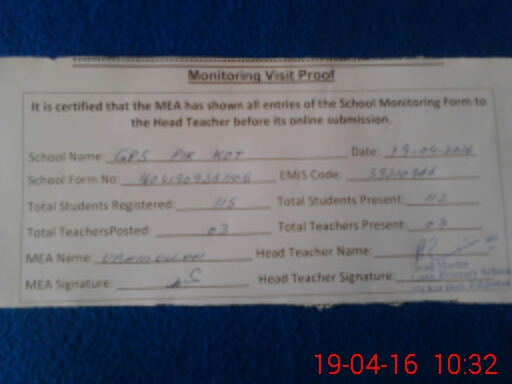 | EMIS Code: 39210466 | Name of School: GPS PIR KOT PAKPATTAN | |||