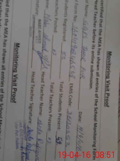 | EMIS Code: 36130353 | Name of School: GGPS TAHIR PUR MULTAN | |||
