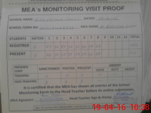 | Attendance Register | Head Teacher | MEA with School | Visit Proof |