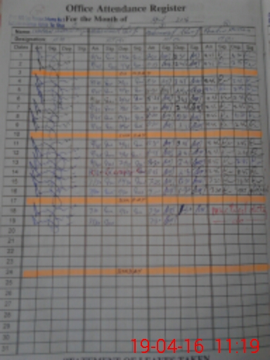 | CNIC | Full Name | Designation | R/C | Absence During Last Calender Month |