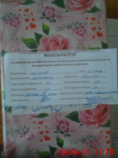 | Attendance Register | Head Teacher | MEA with School | Visit Proof |