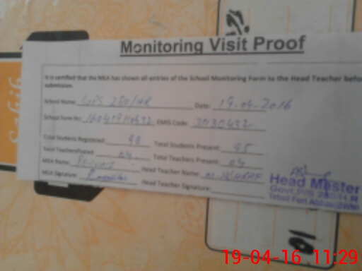 | Attendance Register | Head Teacher | MEA with School | Visit Proof |