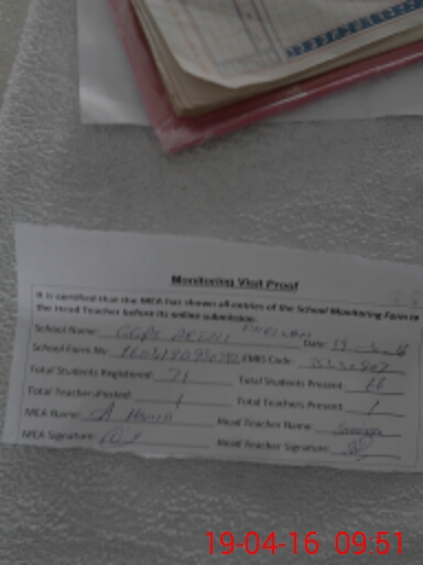 | Attendance Register | Head Teacher | MEA with School | Visit Proof |