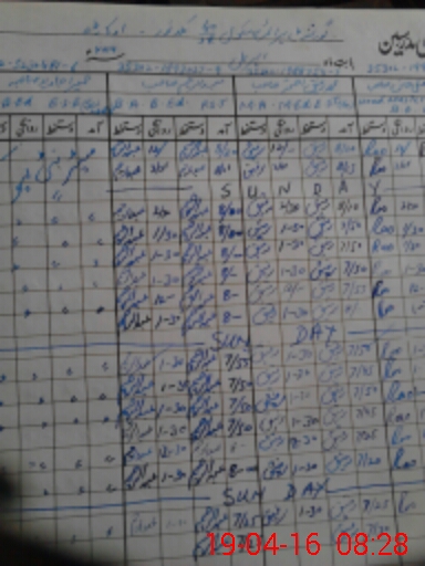 | CNIC | Full Name | Designation | R/C | Absence During Last Calender Month |