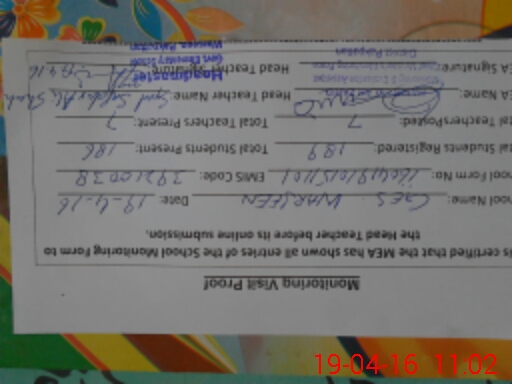 | Attendance Register | Head Teacher | MEA with School | Visit Proof |