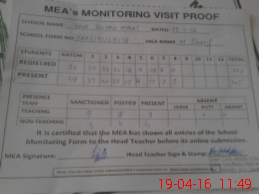 | Certified that this School was Inspected by the Undersigned MEA/DMO Today and the Information Stated Above is as Per Record. | |||||