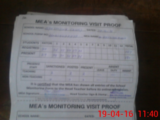 | Attendance Register | Head Teacher | MEA with School | Visit Proof |