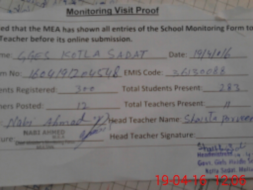 | EMIS Code: 36130088 | Name of School: GGES KOTLA SADAT NEAR SADIQ ABAD MULTAN | |||