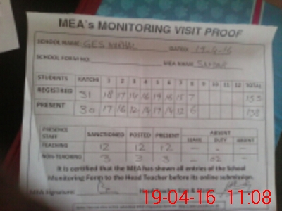 | Attendance Register | Head Teacher | MEA with School | Visit Proof |