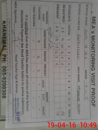| EMIS Code: 36420396 | Name of School: GGPS 18/AH, KHANEWAL | |||