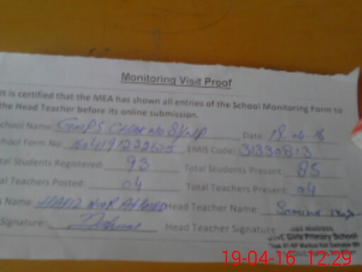 | Attendance Register | Head Teacher | MEA with School | Visit Proof |