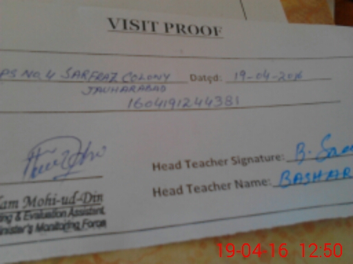 | EMIS Code: 38210450 | Name of School: GPS NO. 4 SARFRAZ COLONY JAUHARABAD | |||