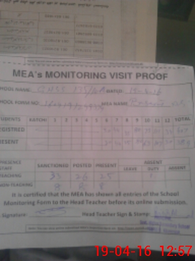 | Certified that this School was Inspected by the Undersigned MEA/DMO Today and the Information Stated Above is as Per Record. | |||||