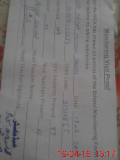 | EMIS Code: 31310855 | Name of School: GPS NAZAR HUSSAIN DASHTI (After Noon) | |||