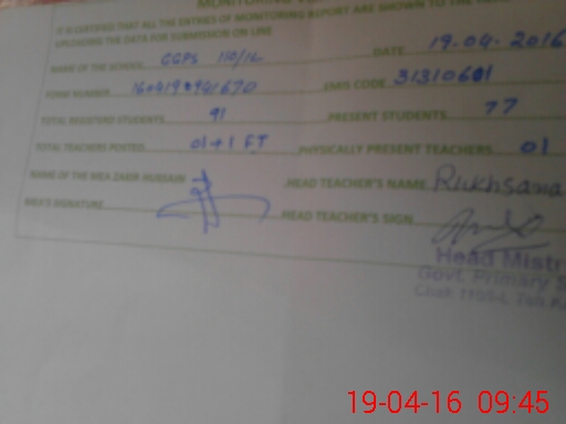 | EMIS Code: 31310601 | Name of School: GGPS CHAK NO. 110/1-L | |||