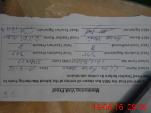 | Attendance Register | Head Teacher | MEA with School | Visit Proof |