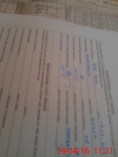 | Attendance Register | Head Teacher | MEA with School | Visit Proof |