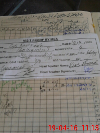 | Attendance Register | Head Teacher | MEA with School | Visit Proof |