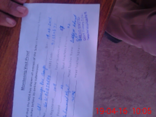 | Attendance Register | Head Teacher | MEA with School | Visit Proof |