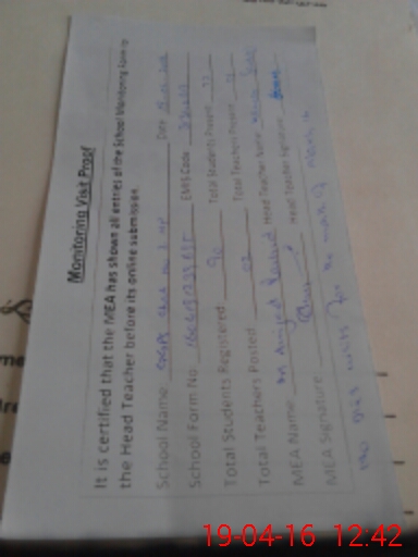 | Certified that this School was Inspected by the Undersigned MEA/DMO Today and the Information Stated Above is as Per Record. | |||||