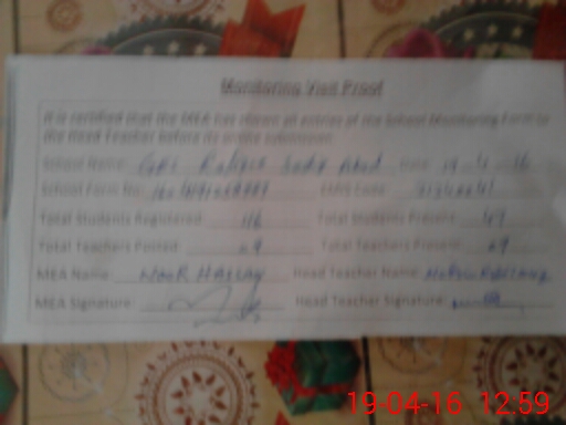 | Certified that this School was Inspected by the Undersigned MEA/DMO Today and the Information Stated Above is as Per Record. | |||||