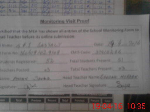| EMIS Code: 37410266 | Name of School: GPS SADYALI | |||