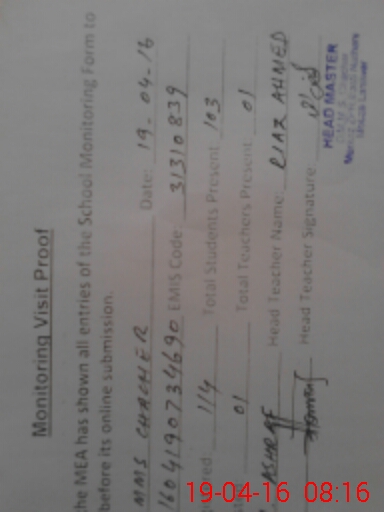 | EMIS Code: 31310839 | Name of School: GPS CHAHCHAR | |||