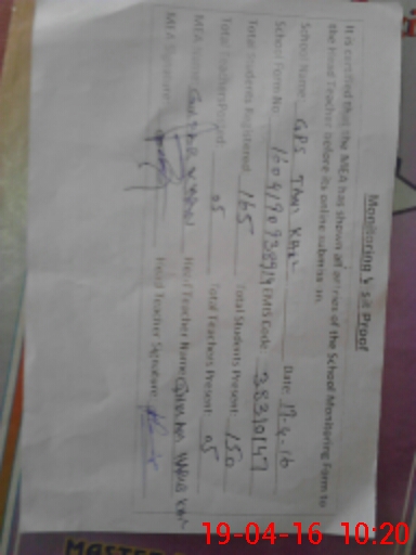 | Monitoring Date: 19-04-2016 | Start Time: 19-04-2016 09:14 AM | End Time: 19-04-2016 10:23 AM | Name of MEA: SA**** KH**** (R**** | |