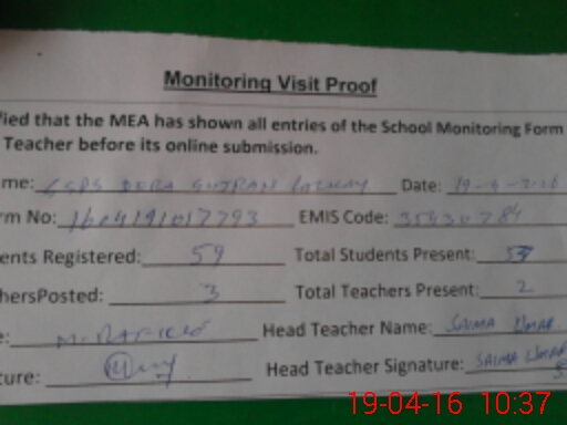 | EMIS Code: 35430784 | Name of School: GGPS DERA GUJRAN LALKAY | |||