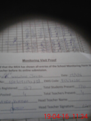 | Attendance Register | Head Teacher | MEA with School | Visit Proof |