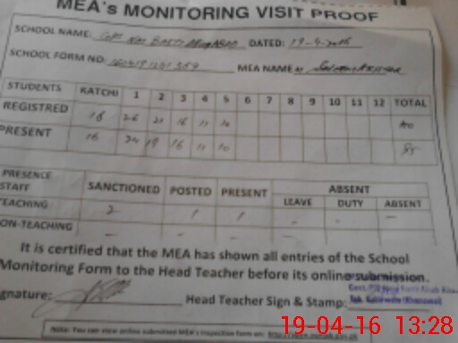 | Certified that this School was Inspected by the Undersigned MEA/DMO Today and the Information Stated Above is as Per Record. | |||||