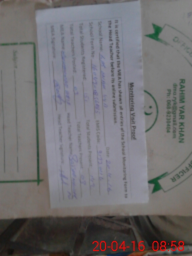 | District: RAHIMYAR KHAN | Tehsil: LIAQATPUR | Markaz: CHAK 25/A-MALE | Level: Primary | |