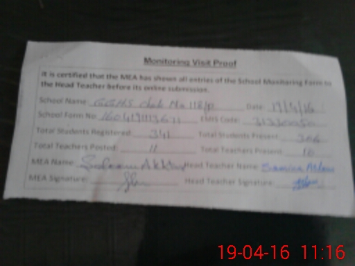 | Certified that this School was Inspected by the Undersigned MEA/DMO Today and the Information Stated Above is as Per Record. | |||||