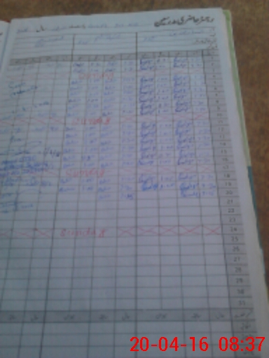 | CNIC | Full Name | Designation | R/C | Absence During Last Calender Month |