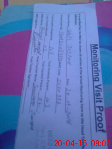 | Attendance Register | Head Teacher | MEA with School | Visit Proof |