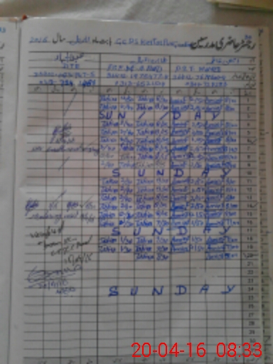 | CNIC | Full Name | Designation | R/C | Absence During Last Calender Month |