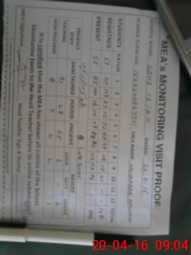 | Attendance Register | Head Teacher | MEA with School | Visit Proof |