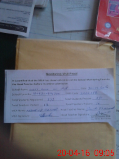 | Attendance Register | Head Teacher | MEA with School | Visit Proof |