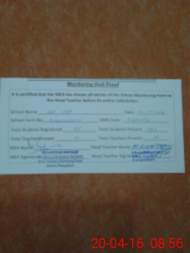 | Certified that this School was Inspected by the Undersigned MEA/DMO Today and the Information Stated Above is as Per Record. | |||||