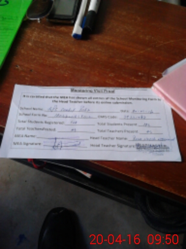 | Attendance Register | Head Teacher | MEA with School | Visit Proof |