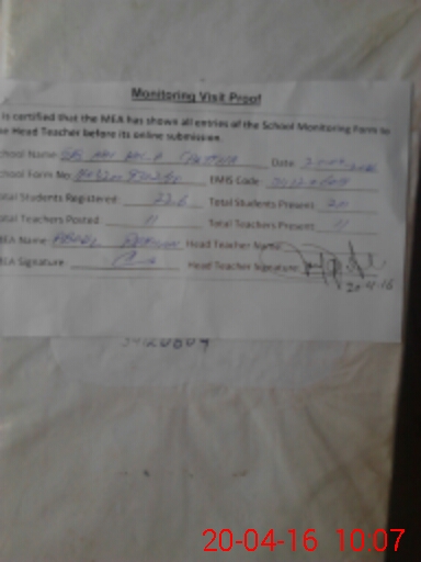 | Certified that this School was Inspected by the Undersigned MEA/DMO Today and the Information Stated Above is as Per Record. | |||||