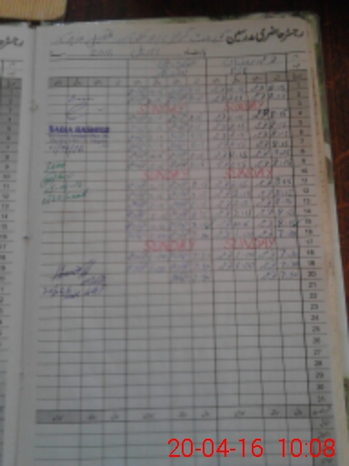 | CNIC | Full Name | Designation | R/C | Absence During Last Calender Month |